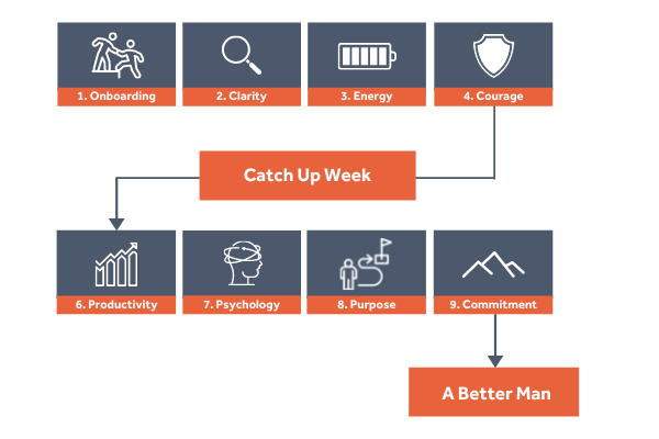 During this course, you develop clarity and focus, create impactful habits, increase your productivity and balance your life - you will become a highly effective man. To see if this course is right for you, please complete this questionnaire.
